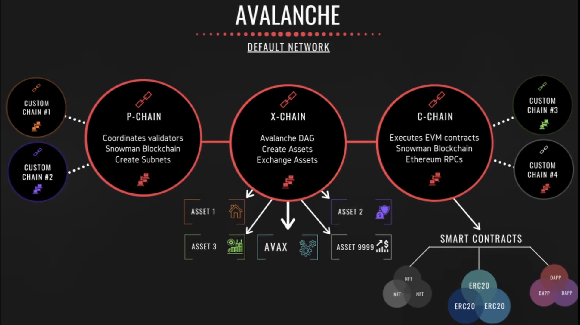 Avalanche is actually considered a network of subnets which is kind of like Polkadot's parachains model where you have a lot of custom chains connected to the main network.